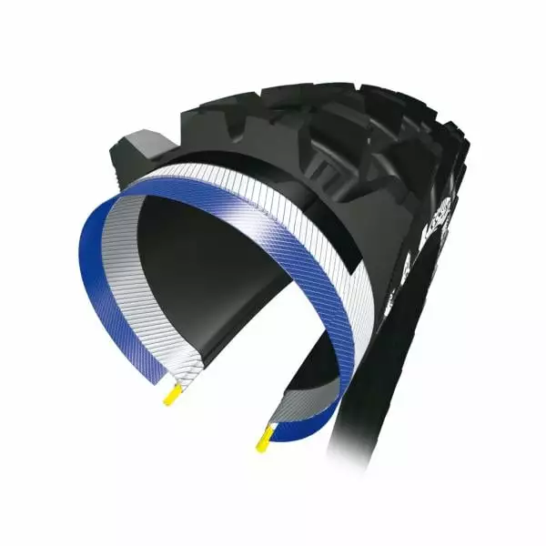 La mescola di gomme Magi-X² aumenta l’aderenza durante la frenata e in curva, qualunque siano le condizioni e la temperatura. La forma dei tasselli aumenta la progressività e la versatilità del terreno. La carcassa leggera e robusta Gravity Shield 3×60 TPI è adatta alle discipline più complesse. I rinforzi ad alta densità aumentano la robustezza.